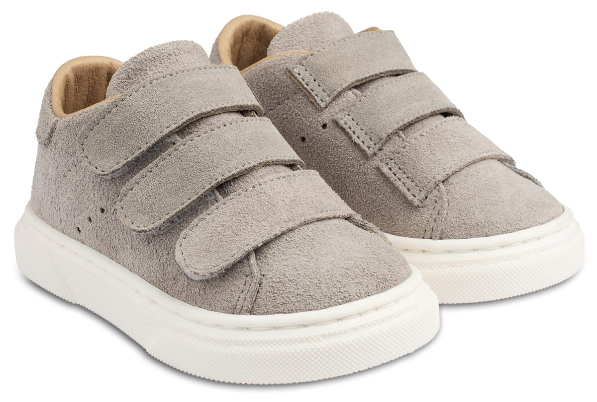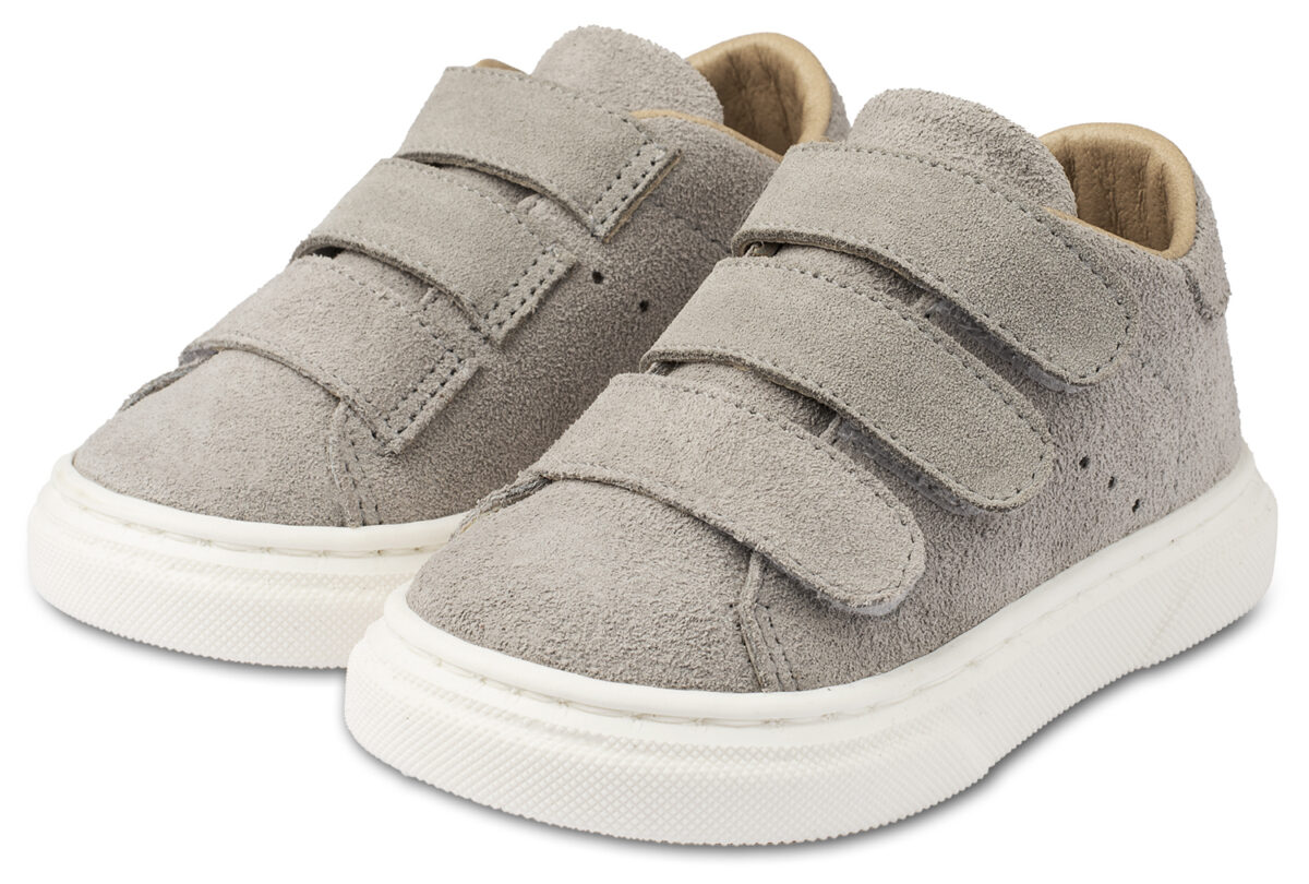 Δερμάτινο μονόχρωμο sneaker με τριπλή μπαρέτα χρατς, σε γκρι χρώμα