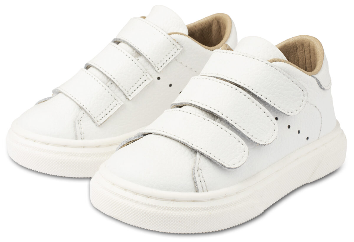 Δερμάτινο μονόχρωμο sneaker με τριπλή μπαρέτα χρατς, σε λευκό χρώμα