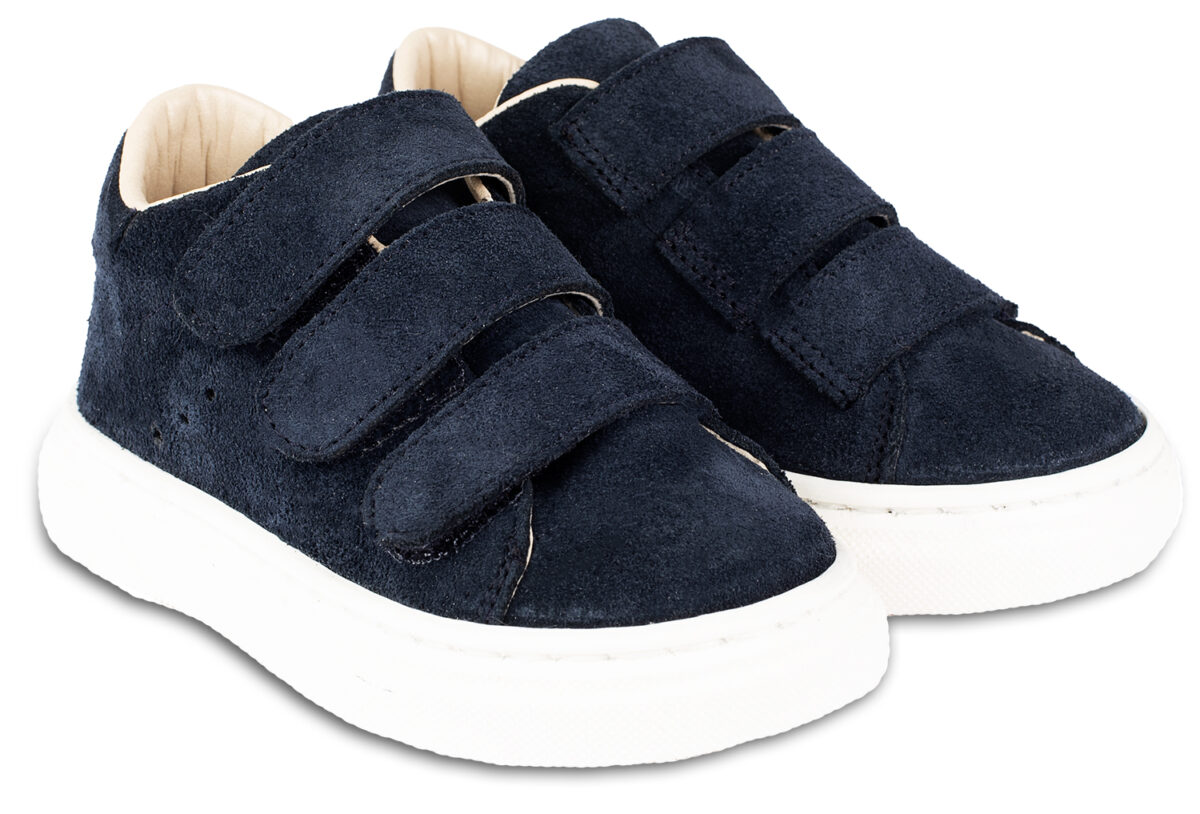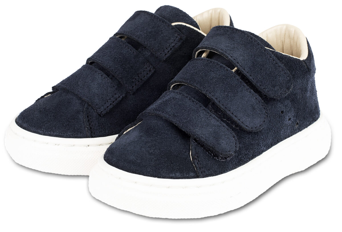 Δερμάτινο μονόχρωμο sneaker με τριπλή μπαρέτα χρατς, σε μπλε χρώμα