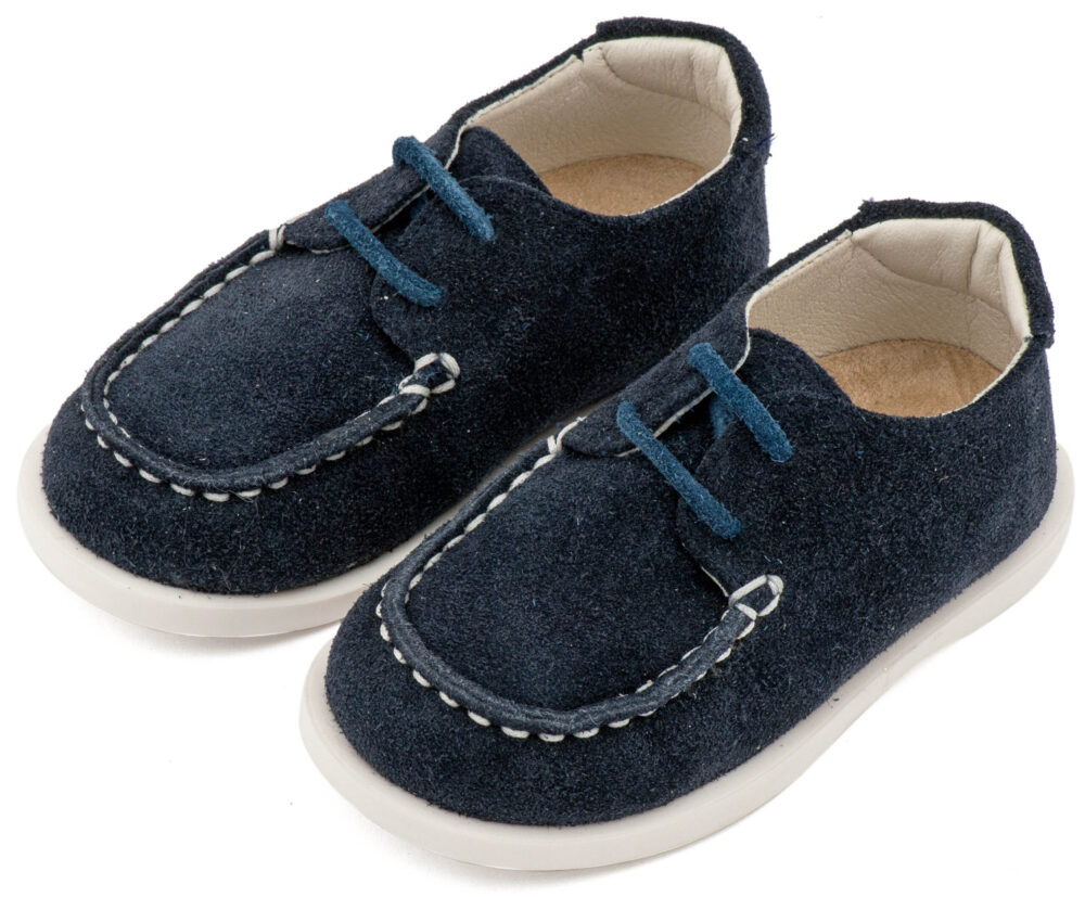 Καστόρινο δετό μοκασίνι με δερμάτινο κορδόνι σε μπλε χρώμα
