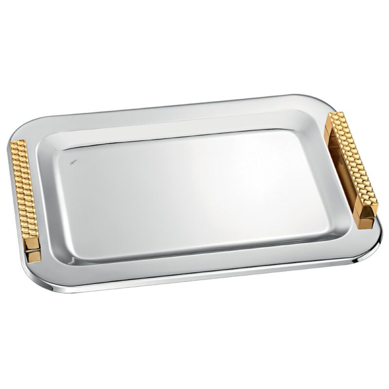 Δίσκος γάμου inox παραλληλόγραμμος σε ασημί χρώμα με λαβές σε απόχρωση του χρυσού