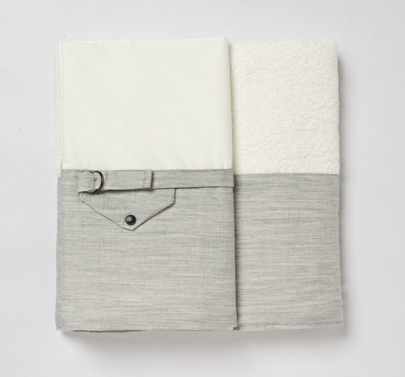 Βαμβακερά λαδόπανα σε ιβουάρ χρώμα με γκρι φάσα στο τελείωμα και ιδιαίτερο design στο στολισμό του. Τα λαδόπανα περιλαμβάνουν μεγάλη πετσέτα και σεντόνι, πετσέτα μικρή και εσώρουχα.